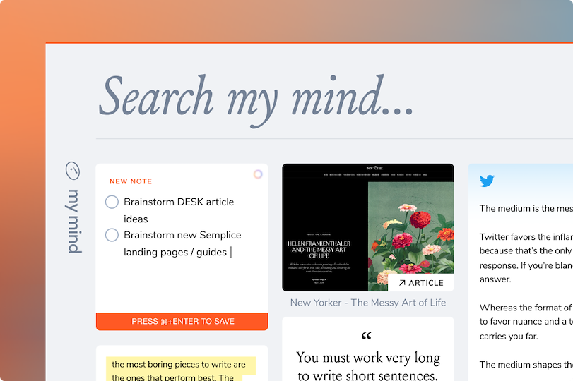 When you’ve been using it for a little while, you start to notice: mymind shapes itself to you, your workflow and the way your actual mind works.