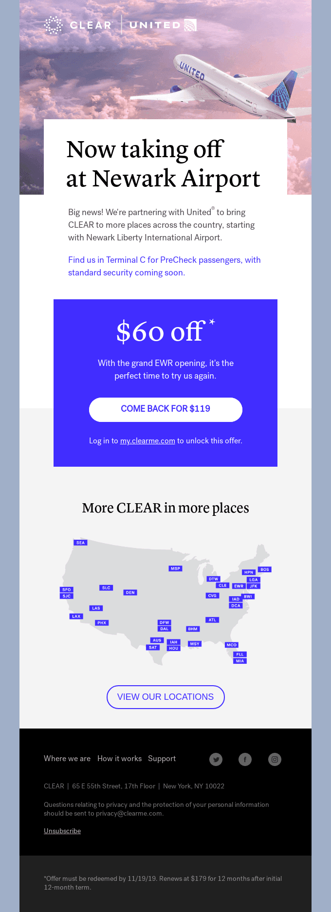 I feel like both of these emails are good examples of that. Like, I don't know what "Modern heist." means or "Say bye. Get pie.", but then I like, look down here, I'm like, Oh, $25 and delivery fee credit. No code required. Like, that's much more valuable to me.