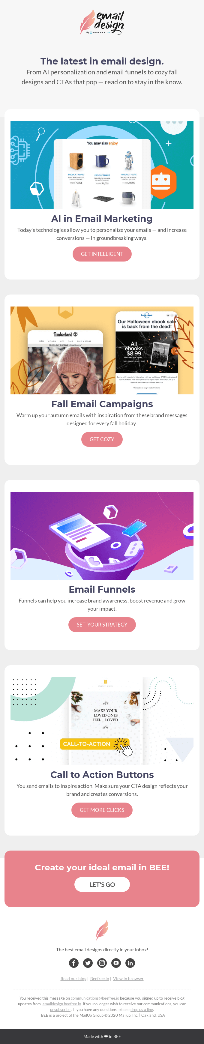 Whether you’re writing a personal newsletter or advertising your brand’s products in a fall-themed email, it’s important to test your email designs to learn what works best for your audience. Keep the conversation going year-round in your emails, through social media, and on your website so your audience will come to love and expect your seasonal emails aligning with your branding.