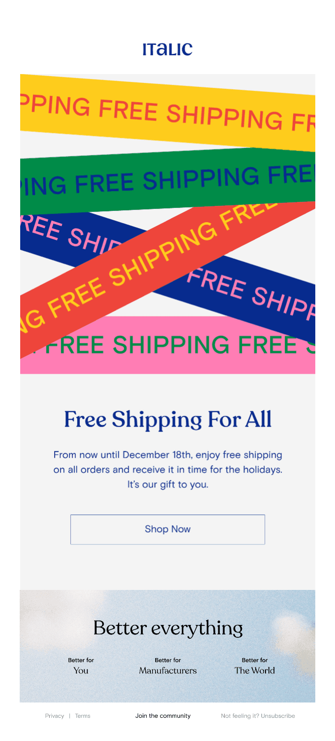We don't use bullet points a lot, but in this email we kind of use them to help communicate a tiered discount that we were offering to our wholesale customers. And then also shout out to beige, blobs, and large type again.
