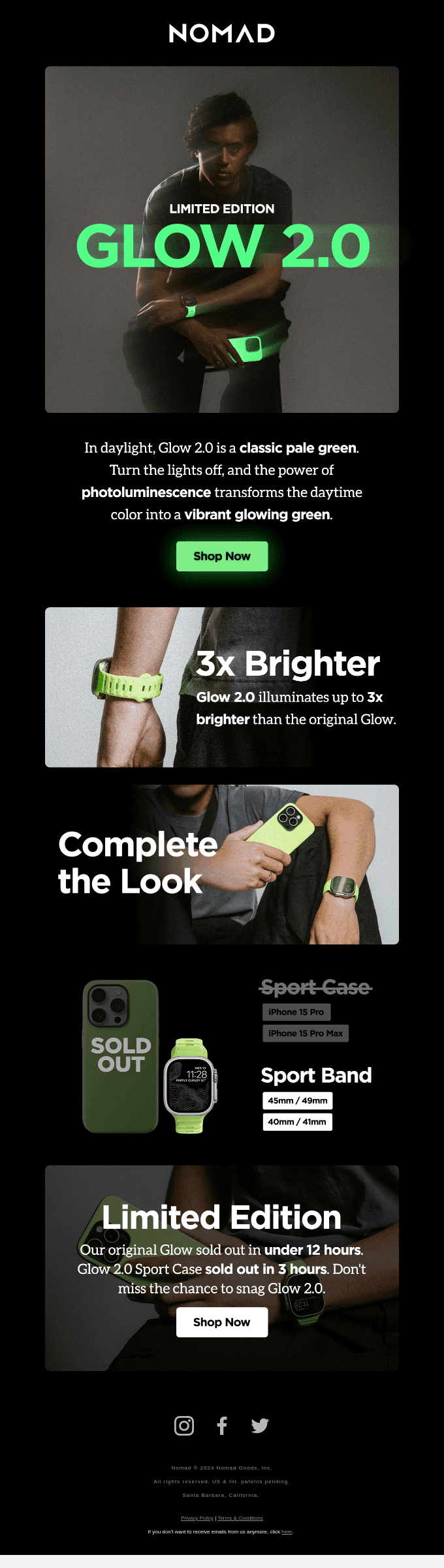 So obviously this was to give the whole newsletter a very nighttime feel and also make it feel different from our other launches. Cause it was like the first time we were doing glow in the dark. So I want it to be like, surprise, here's something new. and then I also had a lot of fun with this GIF of the photos changing from light to dark. And that is my hand in all of those pictures.