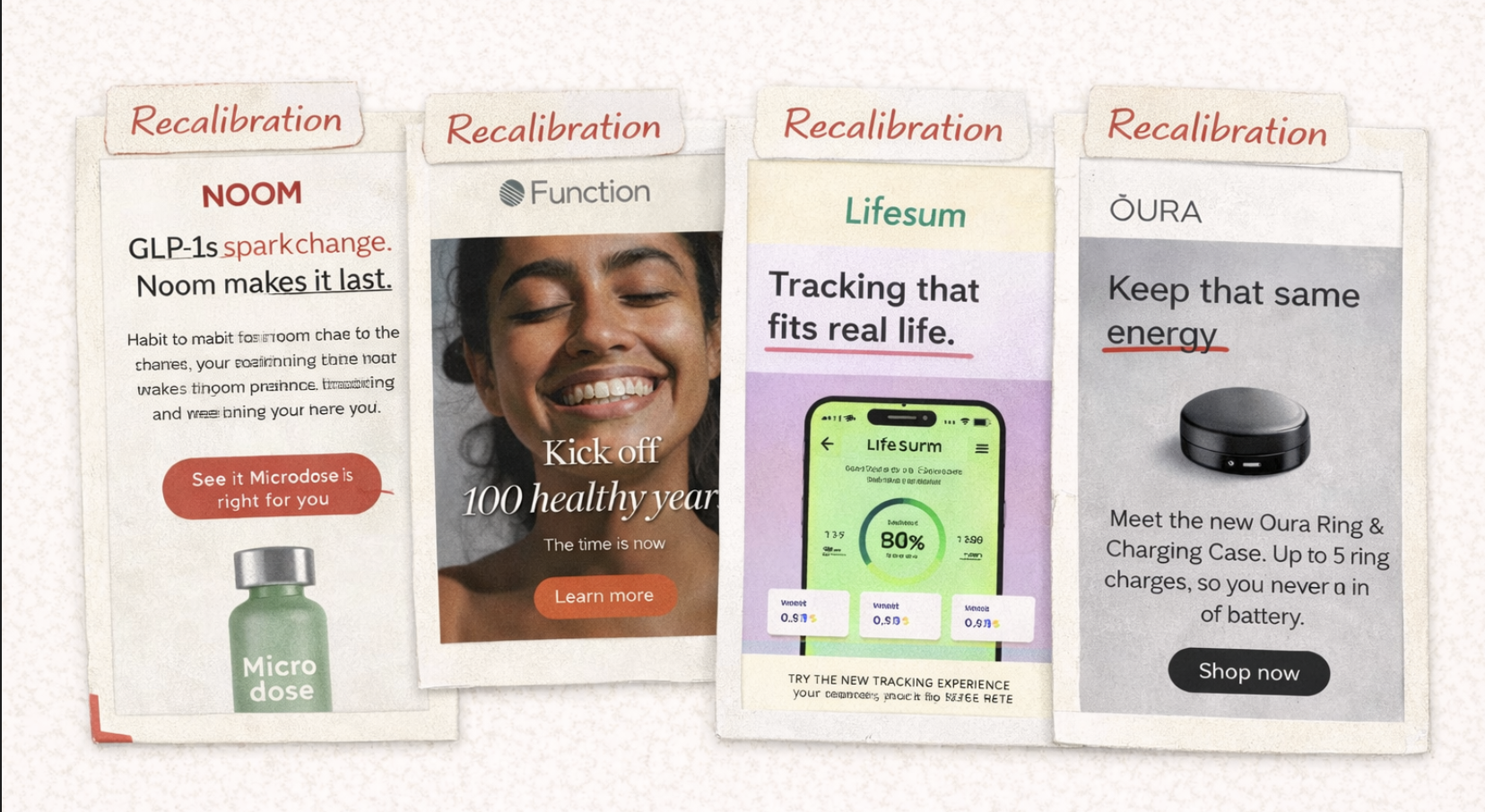 Examples: Noom, Lifesum, Function Health (multiple), Headspace, Ritual, Brez, Ōura, Lush.