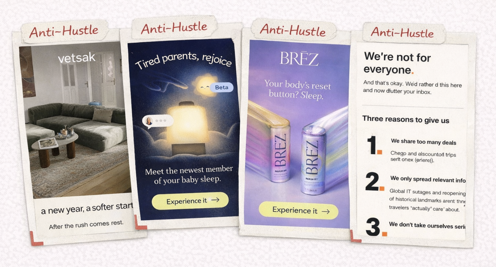 This year, on the other hand, seems to be quieter and smarter, with a touch of gentle language. “Fits real life.” “You’re covered.” “Softer start.” “Tired parents, rejoice.” “We’re not for everyone.” It’s anti-hustle without ever calling itself anti-hustle.